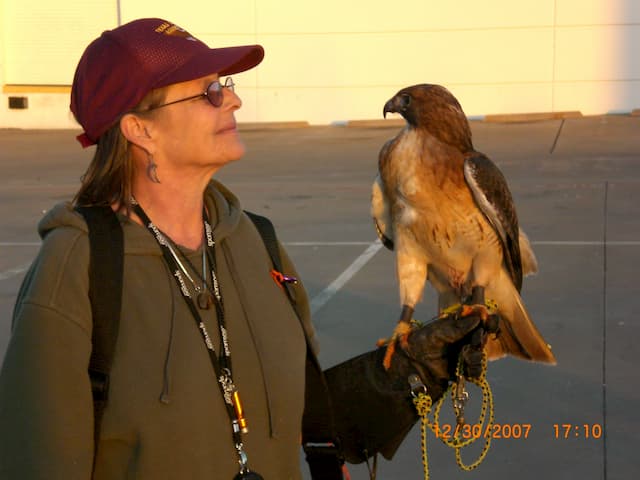 Laura maintained long-time friendships with many across the United States and repeatedly her clarity of thought and well-spoken nature are mentioned. She was a calm presence, with an ability to distill the essence of a subject from what was spoken to her. Laura hosted many falconers in her home, no matter where she was living and she attended many falconry meets throughout her life. She lived in Wyoming, Texas, Louisiana, Colorado, New York and Arizona and traveled across the United States to falconry and car racing events. She was proud to have flown and hunted hawks in 11 states.