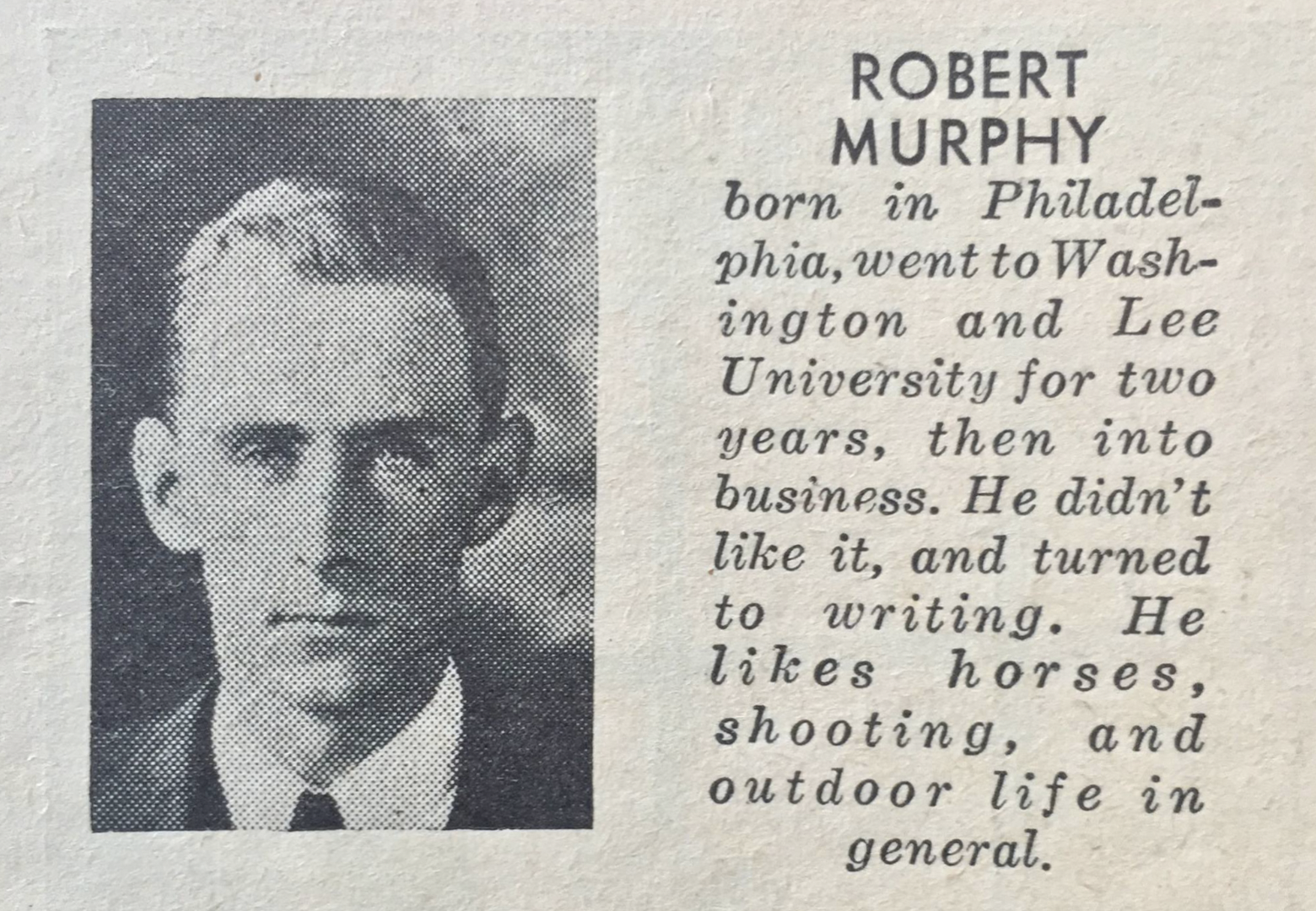 Murphy was represented by two literary agencies during his writing career, the first being Brandt & Brandt. In the mid-1940s he began a much longer and more profitable association with Harold-Ober Associates, represented there by the legendary literary agent Dorothy Olding who also named his son. Murphy’s collected works are housed at Gotlieb Archival Research Center at Boston University, Special Collections, accession number 161.