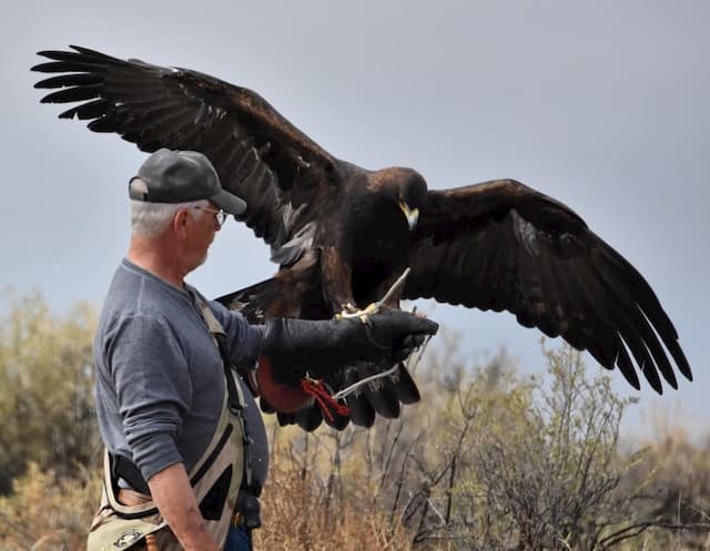 We hawked together now and then and shared a room at the Utah NAFA Meet with our Eagles and Vizslas. Scott was extremely helpful and full of ideas that we implemented in forming the International Eagle Austringers Association. He even made up the first Logo and had patches made for us all. Also, he was the keeper of our eagle traps.